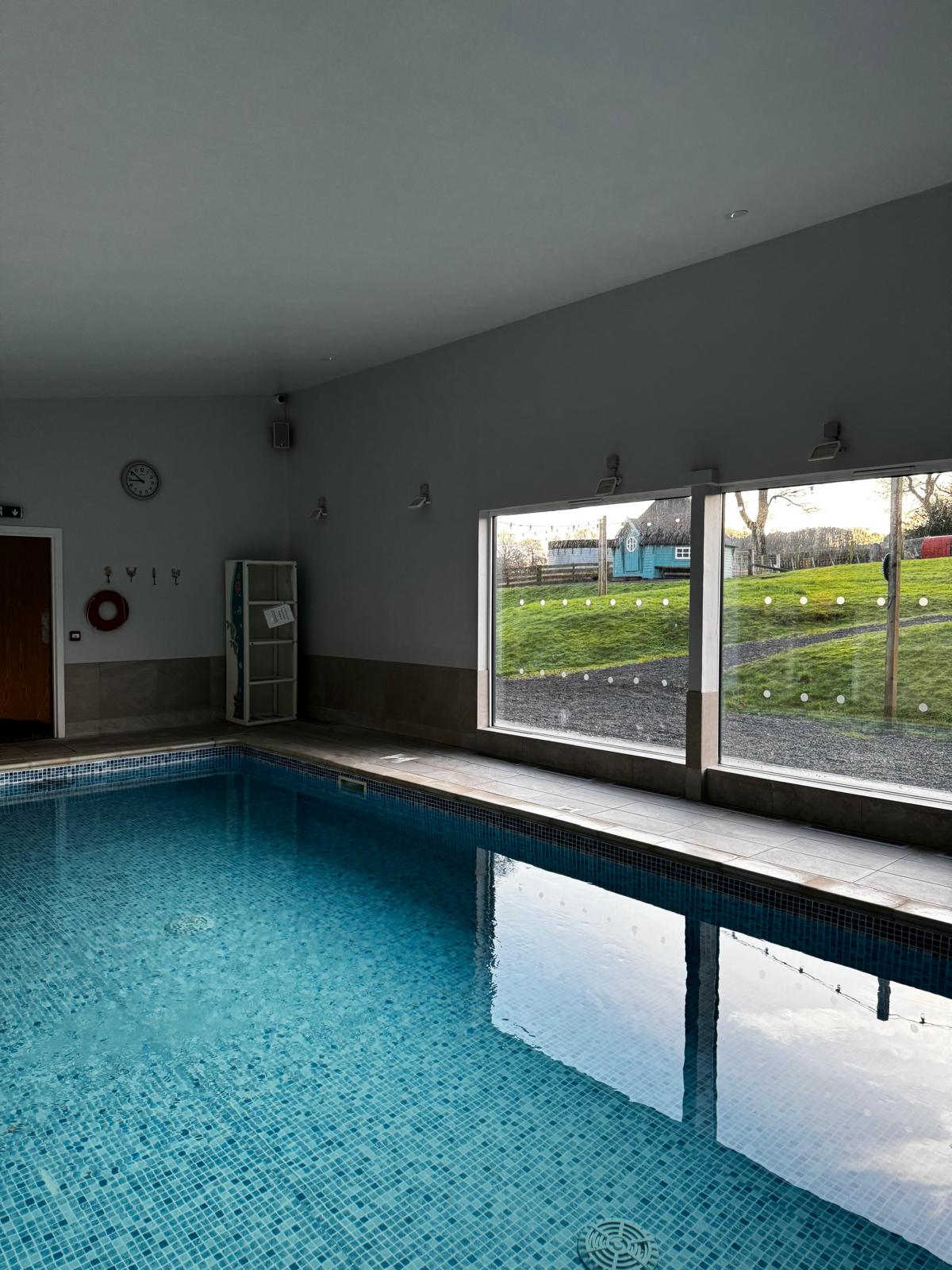 Our glamping pod site features a 10 x 4m private and heated indoor swimming pool with panoramic window overlooking our farm, it is the perfect spot for a luxury secluded swim. The swimming pool is open to everyone, from pod guests, to families in our community looking for a private place to swim. It is ideal for fun family swims, a kids swimming party or even private swim training. When you hire the pool, you have it completely to yourself!