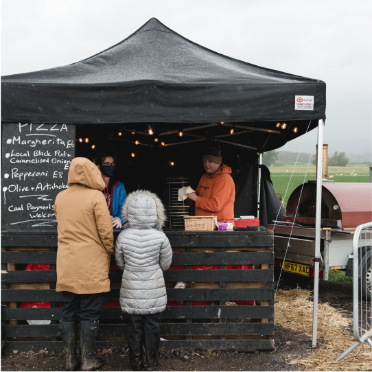 In areas. The pumpkin patch itself is in a real field, although we have gravel paths . You can access our catering area via a path. With babies, if you can use a baby carrier I would recommend it. If you are looking for a disabled parking space, please email ahead of time, and we can provide this for you